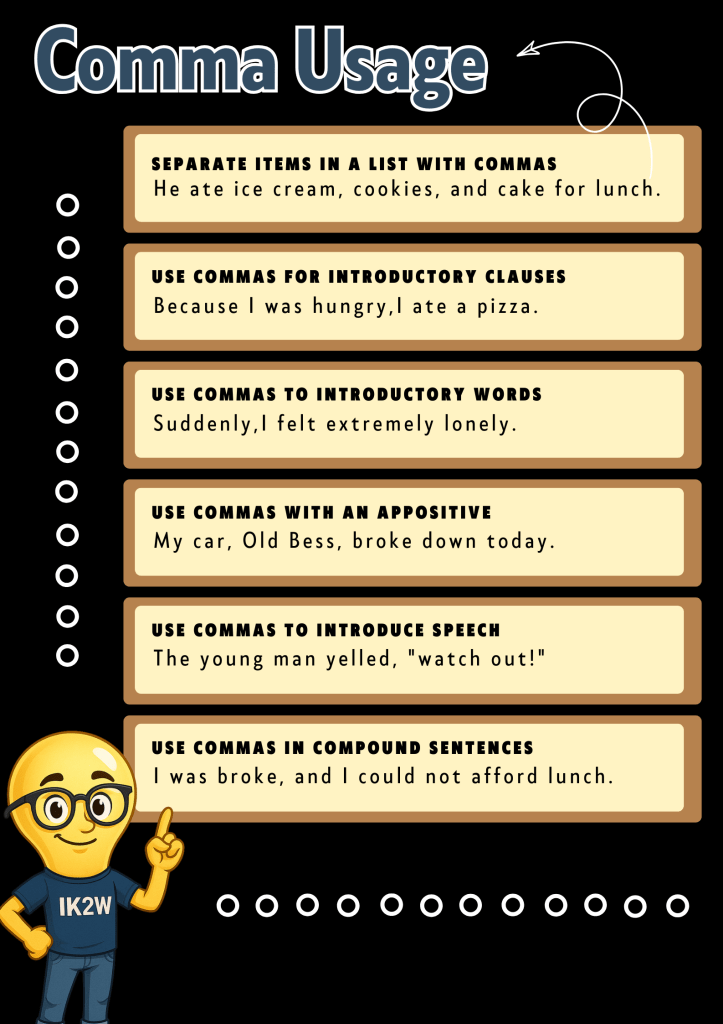 – Capitalization: Proper nouns get capitals: Monday, Google, Africa.